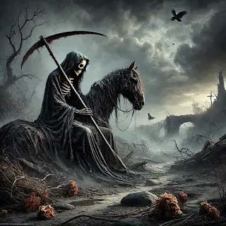 - A Figura da Morte: A Morte, aqui representada por uma figura esquelética, nos lembra da inevitabilidade da mudança. Ela não é uma figura de pavor, mas uma presença silenciosa e transformadora, que vem para cortar o que já não serve, o que já não tem mais vida. Ela não destrói, apenas transforma.