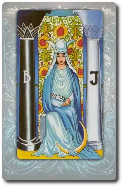 Mistérios e emoções ocultas. Segredos, medos ou ilusões. A Sacerdotisa conhece o que está nas sombras.