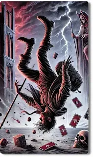O Louco invertido nas combinações de Tarot aponta para impulsividade descontrolada ou, no extremo oposto, medo de arriscar e bloqueio diante do novo. Em leituras, pode indicar decisões precipitadas, falta de direção ou escolhas feitas sem consciência das consequências. Também revela insegurança, imaturidade emocional ou dificuldade em confiar no próprio caminho. É o início que hesita ou o salto dado sem olhar o chão. (Há passos que se perdem… não por falta de caminho, mas por falta de presença.)